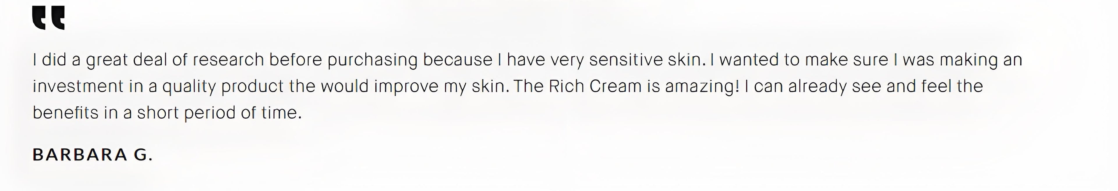 We recommend that you apply The Rich Cream on cleansed, toned, dry skin. It is formulated to target a multitude of skin issues including fine lines and wrinkles, dehydration, redness, loss of elasticity and pore size and therefore, can be used as an all-in-one product.